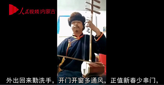 內蒙古牧民用“好來寶”宣傳疫情防控知識。視頻截圖