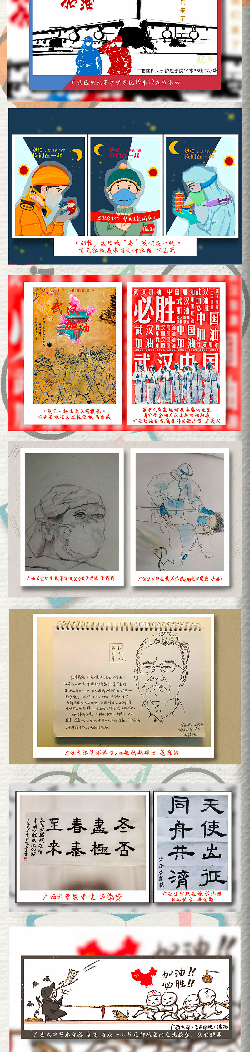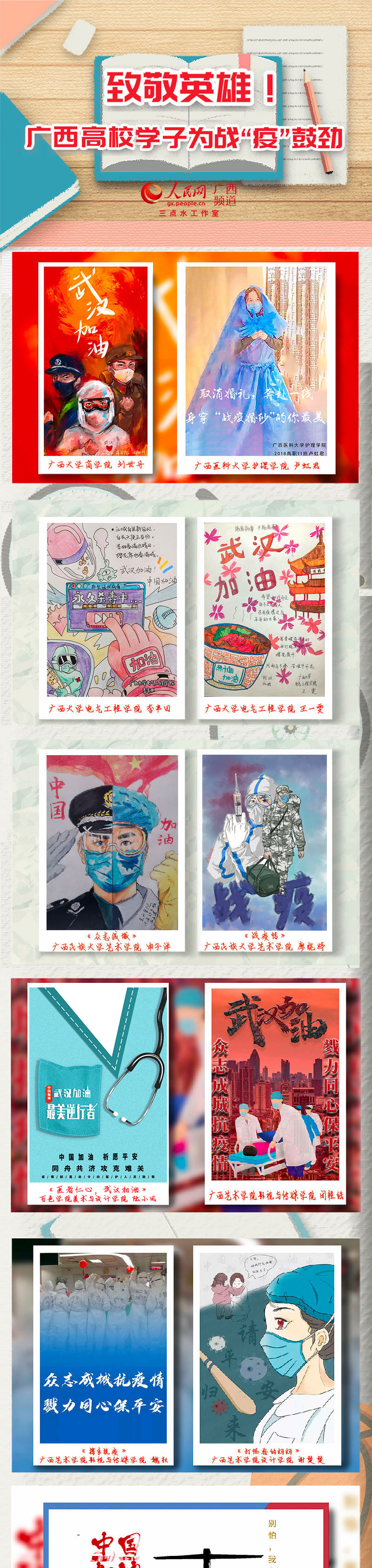 廣西各大高校的青年學(xué)子心系“疫”線,以抗擊疫情為主題創(chuàng)作了一批鼓舞人心的公益作品,向逆行英雄致敬,鼓勵(lì)人們積極樂(lè)觀面對(duì)疫情,以頑強(qiáng)意志、必勝信念打贏疫情阻擊戰(zhàn)。(彭遠(yuǎn)賀、實(shí)習(xí)生溫嘉康)