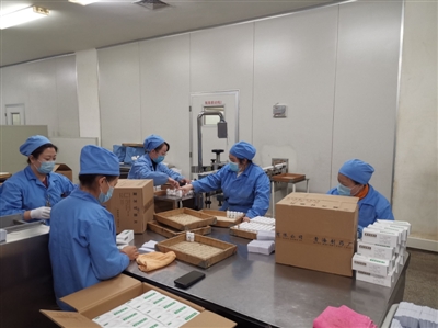 圖為青海制藥廠車(chē)間工人正在進(jìn)行包裝