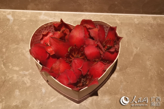 到了酒店,我收到了一份特殊的禮物,是兒子親手為我裝飾的木棉花花籃。晚上看電視報(bào)道時(shí),我才知道,原來(lái)家人為了見(jiàn)我一面,提前一個(gè)小時(shí)就到酒店外等候了。在等待的時(shí)候,兒子就去撿了很多木棉花花瓣,擺成“心”的形狀。