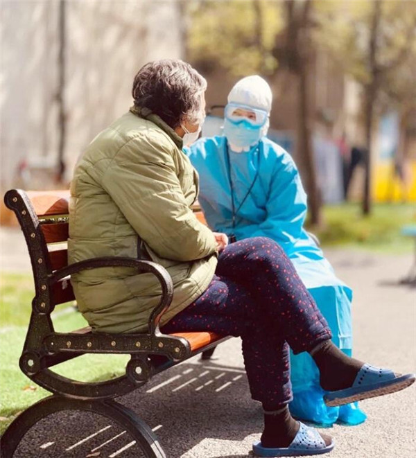 8艙有一位80多歲的老奶奶,中午出來遛彎時(shí)看到了醫(yī)療隊(duì)護(hù)士萬珍妮,主動(dòng)過來攀談。“你是陜西來的?我看你衣服上寫著西安幾個(gè)字了。”“是啊,奶奶,我們是西安國際醫(yī)學(xué)中心醫(yī)院來武漢支援的。”萬珍妮通過和奶奶聊天得知,奶奶的父親以前在寶雞工作過很長時(shí)間。“我也算半個(gè)陜西人了。沒想到在這里還能見到“老鄉(xiāng)”!感謝你們!”奶奶感覺很親切,和萬珍妮話起了“家常”。