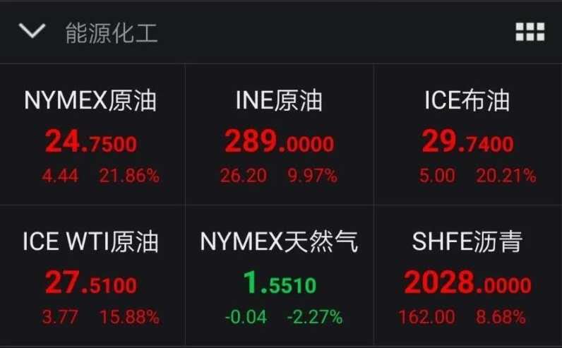 4月2日,國際原油期貨價格出現暴漲,美國WTI原油期貨盤中最高漲超30%,布倫特原油期貨盤中最高漲超46%。截至收盤,美國WTI 原油期貨價格漲幅24.67%,報25.32美元/桶;布倫特原油期貨漲幅21.02%,報29.94美元/桶,均為史上最大單日漲幅。(張旭)