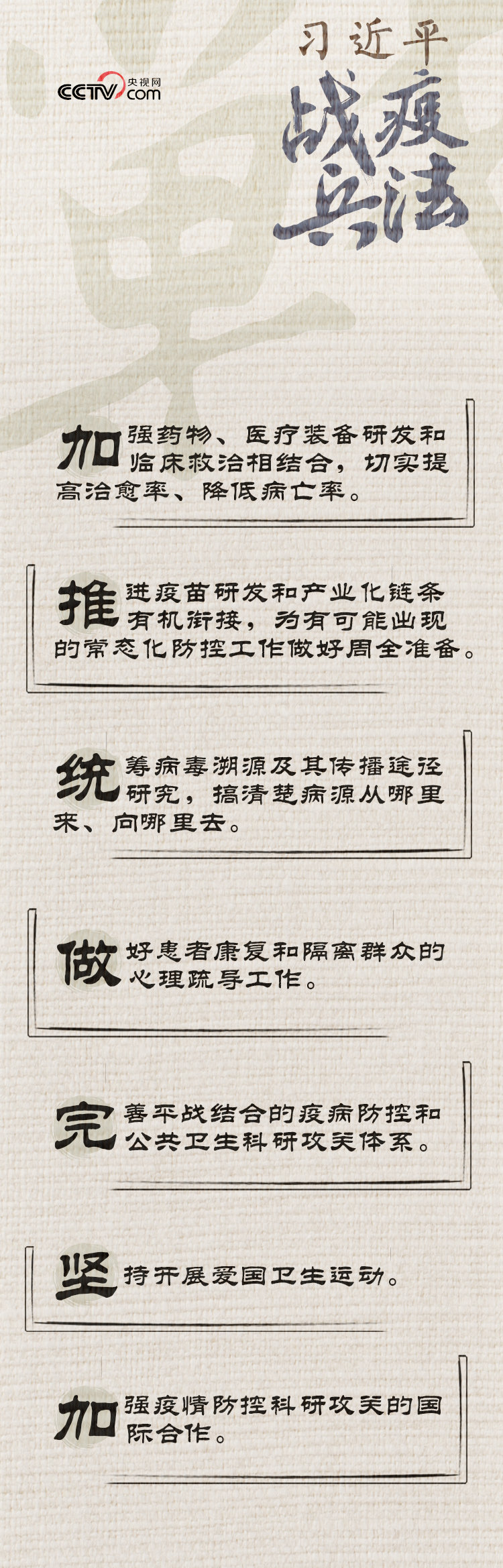 從“遭遇戰(zhàn)”到“阻擊戰(zhàn)”,從“重中之重”到“人民戰(zhàn)爭(zhēng)”,從“頭等大事”到“全面勝利”……觀勢(shì)、謀局、落子,總書記在親自指揮這場(chǎng)人民戰(zhàn)爭(zhēng)的過程中,很多對(duì)策、措施與中國(guó)古代兵家思想高度契合。央視網(wǎng)《人民領(lǐng)袖》欄目推出系列特稿《習(xí)近平戰(zhàn)“疫”兵法》,與您一同領(lǐng)悟其中精髓。