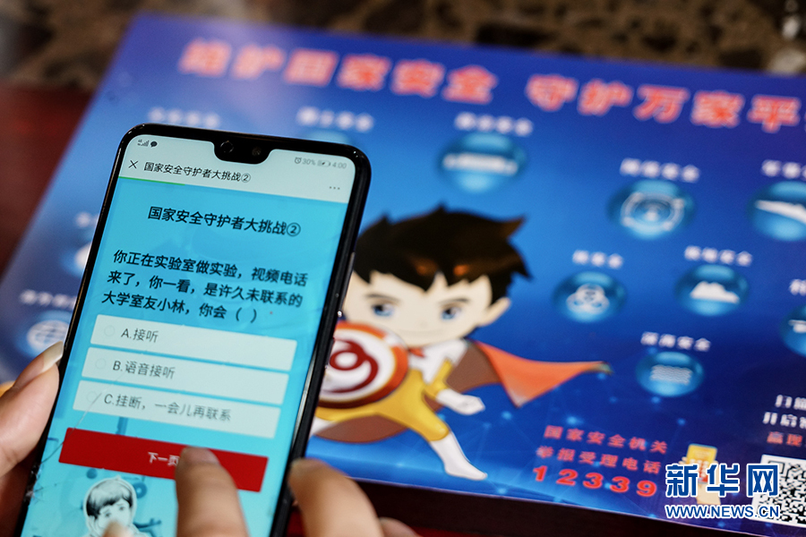 這一游戲程序把“國家安全進網(wǎng)絡”和“國家安全進課堂”相結合,測試內(nèi)容集知識性和趣味性于一體,把國家安全大政方針與人民群眾生產(chǎn)生活可能遇見的風險情況有機結合,以號召廣大人民群眾積極參與到國家安全中來,把國家安全群眾性教育落實落地。新華網(wǎng) 韓夢霖 攝