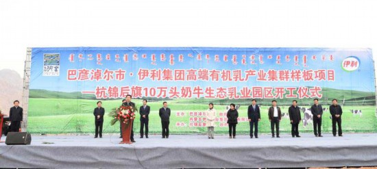 4月18日,巴彥淖爾市伊利集團高端有機乳產(chǎn)業(yè)集群樣板項目——杭錦后旗10萬頭奶牛生態(tài)乳業(yè)園區(qū)開工。自治區(qū)黨委副書記、自治區(qū)主席布小林,自治區(qū)副主席艾麗華出席開工儀式。高曉龍攝
