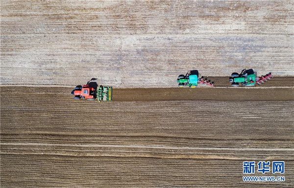 4月22日,西藏拉薩市曲水縣茶巴朗村農(nóng)民利用現(xiàn)代化農(nóng)業(yè)設(shè)備播種“藏青2000”。當(dāng)日,西藏拉薩市曲水縣茶巴朗村進(jìn)行“藏青2000”春播活動(dòng)。西藏是全球唯一大規(guī)模集中種植青稞的地區(qū),也是青稞馴化和多樣化品種的栽培中心。新華社記者普布扎西 攝