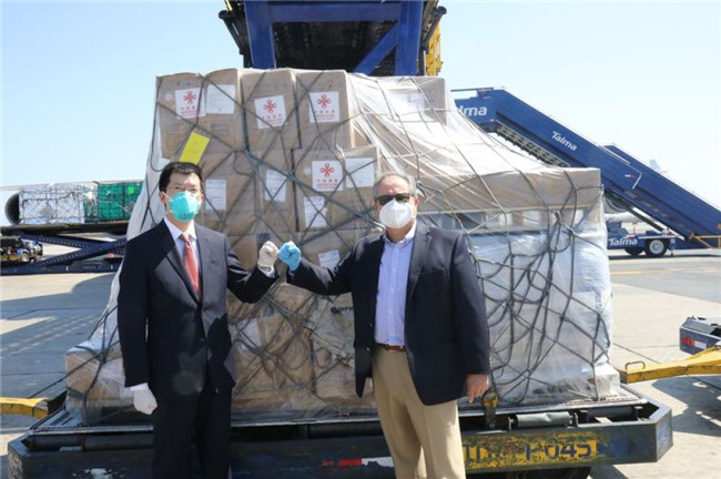 4月26日,中國(guó)政府援秘抗疫物資交接儀式在秘魯舉行。圖片來源:中國(guó)駐秘魯大使館網(wǎng)站