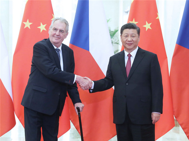 2019年4月28日,國(guó)家主席習(xí)近平在北京人民大會(huì)堂會(huì)見捷克總統(tǒng)澤曼。新華社記者 姚大偉 攝