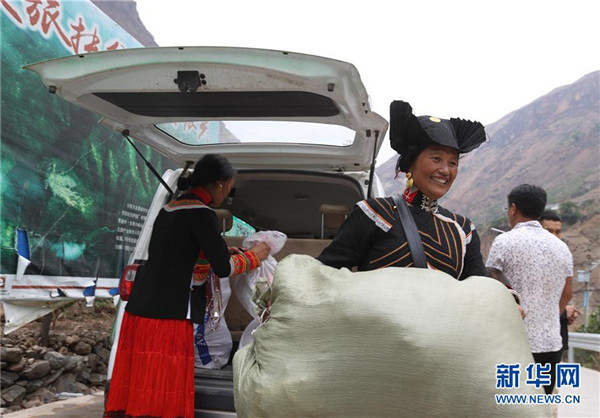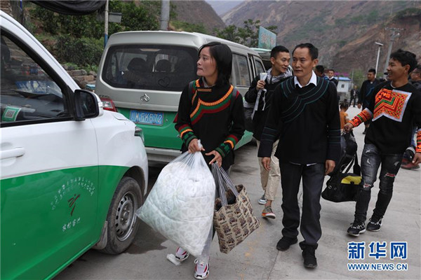 5月12日,四川省昭覺(jué)縣阿土列爾村第一批26戶貧困戶帶著家什陸續(xù)下山準(zhǔn)備搬新家。新華社記者江宏景攝