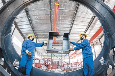 今年以來,江蘇省海安市在科學(xué)防控疫情的同時,及時為企業(yè)解難紓困,幫助民營企業(yè)迅速恢復(fù)產(chǎn)能、拓展國內(nèi)外市場,保持經(jīng)濟(jì)平穩(wěn)運行,確保務(wù)工人員有崗上、有活干、有錢賺。圖為5月17日,在海安市白甸鎮(zhèn)一企業(yè)車間內(nèi),工人在趕制建材裝備訂單。翟慧勇攝(人民視覺)