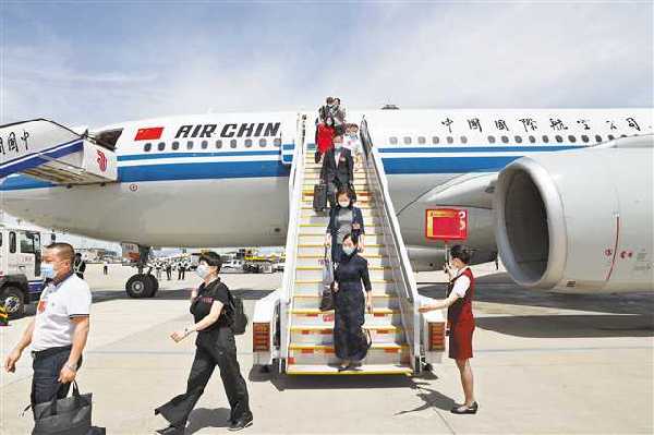 五月二十日,出席十三屆全國(guó)人大三次會(huì)議的重慶代表團(tuán)抵達(dá)北京。記者 巨建兵 攝