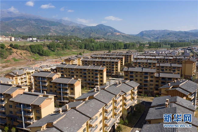 5月10日拍攝的四川省涼山彝族自治州昭覺(jué)縣昭美社區(qū)集中安置點(diǎn)(無(wú)人機(jī)照片)。新華社記者 江宏景 攝