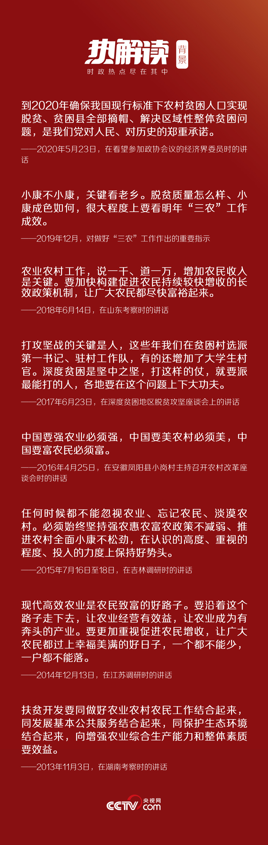 此次聯(lián)組會(huì)上,習(xí)近平再次重申:到2020年確保我國(guó)現(xiàn)行標(biāo)準(zhǔn)下農(nóng)村貧困人口實(shí)現(xiàn)脫貧、貧困縣全部摘帽、解決區(qū)域性整體貧困問(wèn)題,是我們黨對(duì)人民、對(duì)歷史的鄭重承諾。