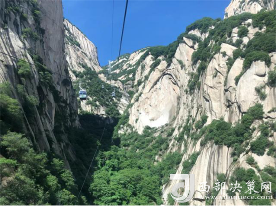 華山西線索道是迄今為止世界上第一條采取崖壁開(kāi)鑿硐室站房、起伏式走向、設(shè)中間站的單線循環(huán)脫掛式索道,索道設(shè)備自法國(guó)引進(jìn),采取全程數(shù)字自動(dòng)化控制系統(tǒng),達(dá)世界一流水平。索道下站設(shè)在甕峪內(nèi)東溝口,中間站設(shè)在仙峪白雀寺,上站設(shè)在華山西峰巨靈足南側(cè)下絕壁洞室內(nèi)。索道線路斜長(zhǎng)4211米,相對(duì)高差894米,支架28個(gè),客運(yùn)吊廂84個(gè),吊廂間距為115米,每廂可乘8人,運(yùn)行速度最快6米/秒,單向運(yùn)量1500人/小時(shí)。
