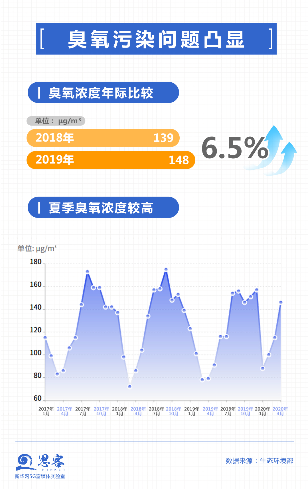 一到夏季,臭氧問(wèn)題又顯現(xiàn)出來(lái)。高濃度臭氧會(huì)刺激和損害眼睛、呼吸系統(tǒng)等黏膜組織,危害不容小覷。對(duì)空氣質(zhì)量管理來(lái)說(shuō),臭氧超標(biāo)日數(shù)增多,已成為很多地區(qū)空氣優(yōu)良天數(shù)比例提升的最大拖累。2019年,全國(guó)337個(gè)地級(jí)及以上城市臭氧濃度同比上升6.5%,以臭氧為首要污染物的超標(biāo)天數(shù)占總超標(biāo)天數(shù)41.8%,僅次于PM2.5(占45%)。臭氧濃度大幅上升造成全國(guó)空氣質(zhì)量?jī)?yōu)良天數(shù)比例同比損失2.3個(gè)百分點(diǎn)。