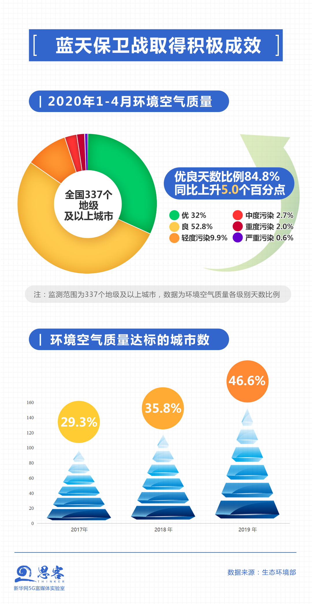 從2020年1-4月數(shù)據(jù)看,全國(guó)337個(gè)地級(jí)及以上城市在平均優(yōu)良天數(shù)、達(dá)標(biāo)率以及PM2.5 年均濃度三大指標(biāo)上均比上年同期有所改善。