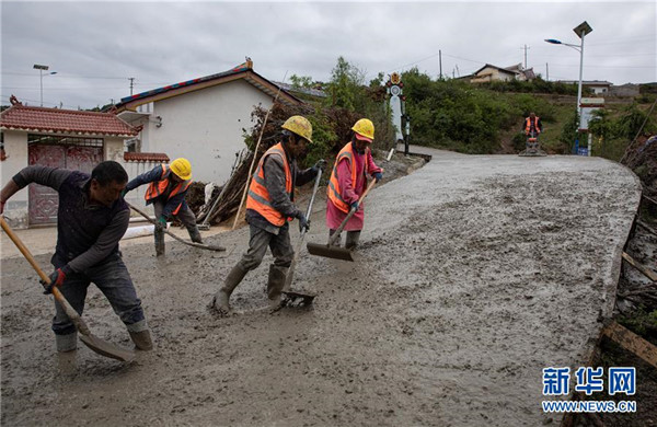 四川路橋公司的工人在金陽(yáng)縣依達(dá)鄉(xiāng)保爾村對(duì)破損路面進(jìn)行整治(6月5日攝)。坐落在金沙江畔的四川省金陽(yáng)縣是國(guó)家級(jí)深度貧困縣,境內(nèi)群山連綿起伏,海拔落差大,眾多村寨處于高山或者高半山上,道路施工難度大。近年來,當(dāng)?shù)卣畬⒔煌ㄗ鳛槊撠毠?jiān)的先導(dǎo)性工程,路越修越寬、越修越好,成為當(dāng)?shù)厝罕姷拿撠氈赂宦?。截?019年底,金陽(yáng)縣實(shí)現(xiàn)所有鄉(xiāng)鎮(zhèn)通油路、建制村通硬化路,鄉(xiāng)道里程達(dá)329.9公里,村道里程達(dá)866.8公里。新華社記者江宏景攝