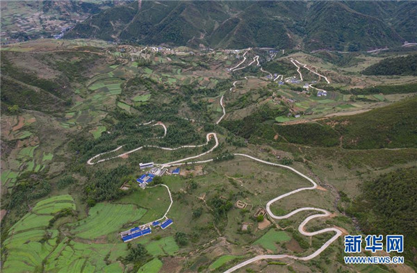 金陽(yáng)縣天地壩鎮(zhèn)通往吉史里口村易地扶貧搬遷集中安置點(diǎn)的道路(6月7日攝,無人機(jī)照片)。坐落在金沙江畔的四川省金陽(yáng)縣是國(guó)家級(jí)深度貧困縣,境內(nèi)群山連綿起伏,海拔落差大,眾多村寨處于高山或者高半山上,道路施工難度大。近年來,當(dāng)?shù)卣畬⒔煌ㄗ鳛槊撠毠?jiān)的先導(dǎo)性工程,路越修越寬、越修越好,成為當(dāng)?shù)厝罕姷拿撠氈赂宦?。截?019年底,金陽(yáng)縣實(shí)現(xiàn)所有鄉(xiāng)鎮(zhèn)通油路、建制村通硬化路,鄉(xiāng)道里程達(dá)329.9公里,村道里程達(dá)866.8公里。新華社記者江宏景攝