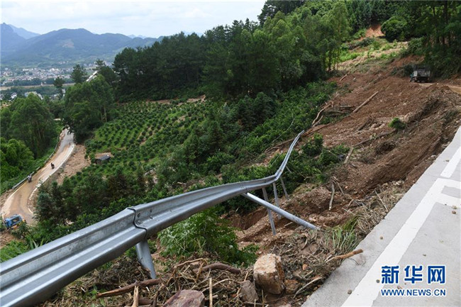 這是廣西陽(yáng)朔縣普益鄉(xiāng)境內(nèi)的一處滑坡?lián)p毀道路(6月11日攝)。新華社記者 陸波岸 攝