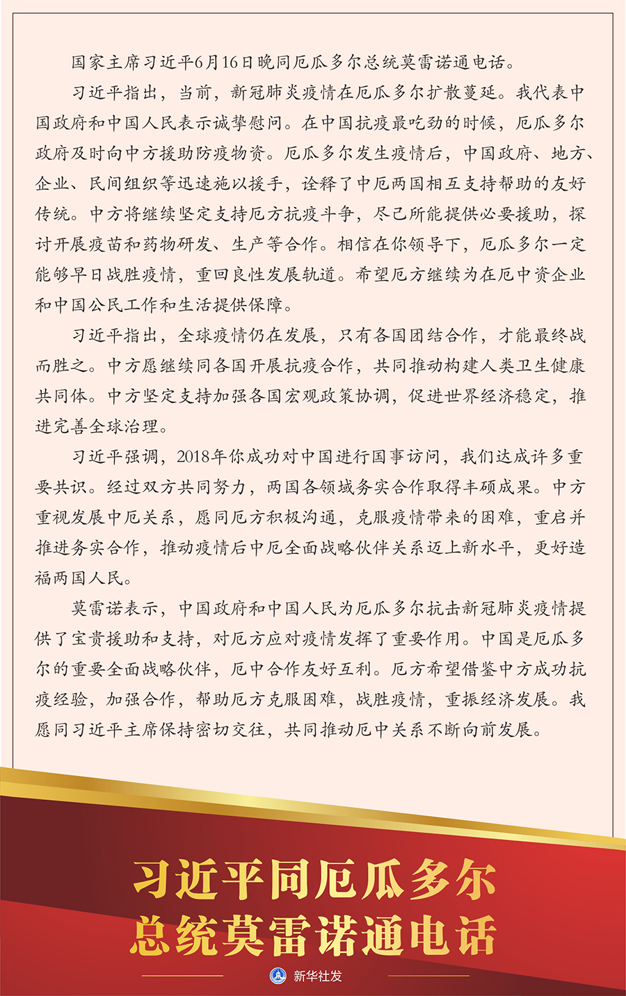 國家主席習(xí)近平6月16日晚同厄瓜多爾總統(tǒng)莫雷諾通電話。