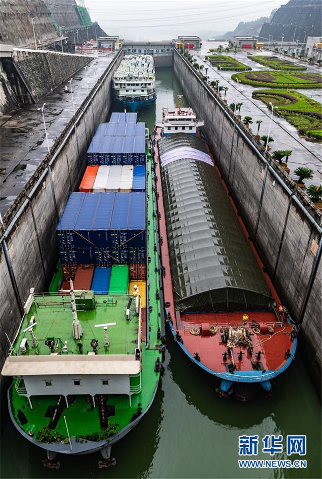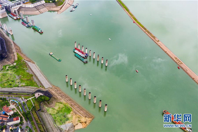 6月17日,船舶有序通過三峽五級船閘。新華社發(fā)(鄭家裕 攝)