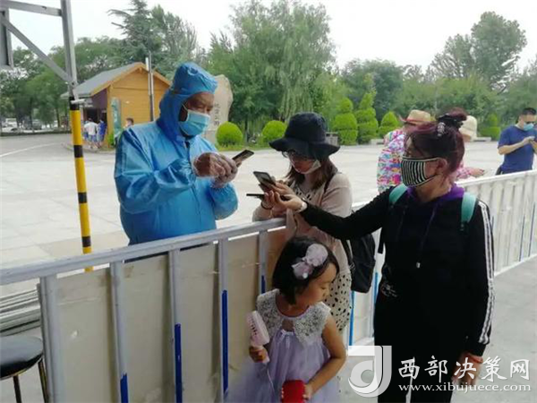 在游客入口處,工作人員正在逐一測(cè)量游客體溫、查驗(yàn)健康碼,沒(méi)有健康碼的,他們要幫助游客注冊(cè)并認(rèn)真登記。經(jīng)檢驗(yàn),一切正常的,恭請(qǐng)入園;體溫不正常的,進(jìn)一步篩查甄別;健康碼是黃色的,勸返;健康碼是紅色的,隔離。
