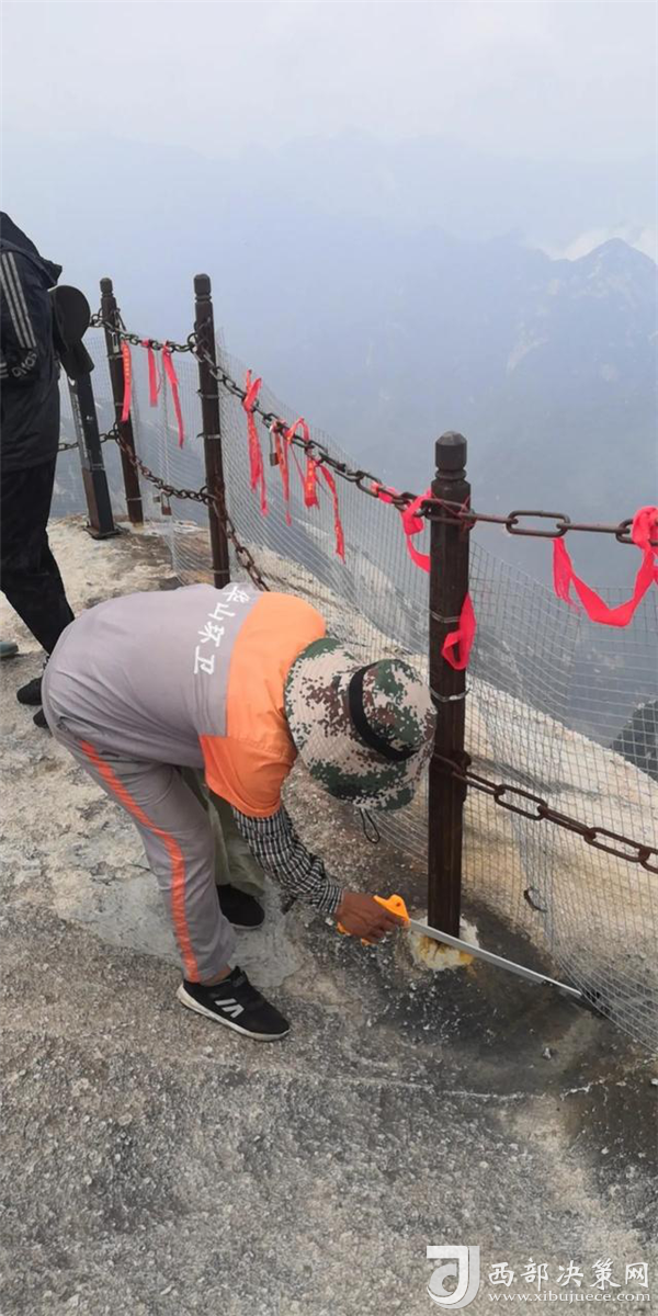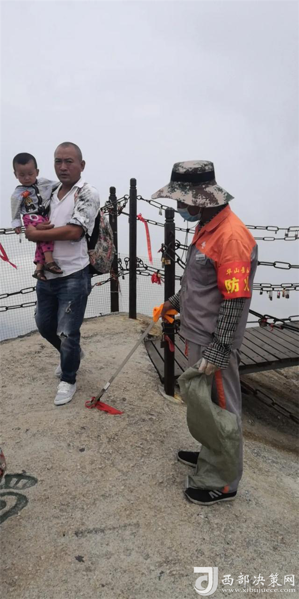 楊群社是景區(qū)一名環(huán)衛(wèi)工,負(fù)責(zé)華山西峰頂區(qū)域的衛(wèi)生保潔工作。為了給游客創(chuàng)造一個(gè)干凈整潔的游覽環(huán)境,熾熱的陽(yáng)光下,楊群社在自己的區(qū)域內(nèi)不停地來(lái)回?fù)焓袄?/div>
