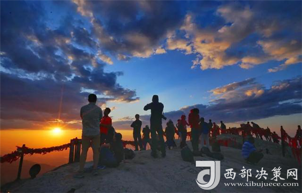 由于華山最高海拔2154.9米,東峰朝陽臺又居高臨險,視野開闊,故為觀日出之最佳位置。旅游季節(jié),每日黎明時分,朝陽臺上,游人濟濟,翹首以待這最輝煌、最壯觀的一刻。