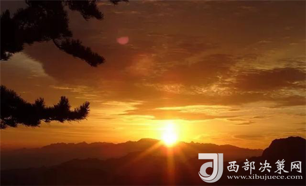 是時,但見夜幕自東方悄然隱退,晨曦初露,漸漸霞光瑰麗,云源奔涌。瞬間,一輪火球噴薄而出,繼而光芒四射,氣象萬千,整個世界大放光明,游人身心為之一振。待云霧散盡,蒼松翠柏,則更加清麗悅目,美妙神奇。故而,游名山者必登華山,登華山者必觀日。華山日出亦被列為華山自然風(fēng)光中的重要景觀之一。