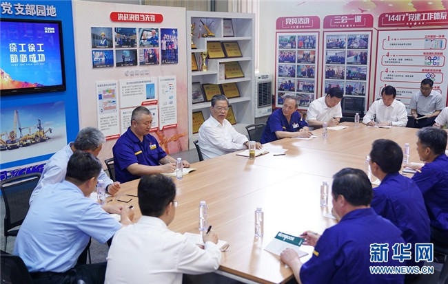 7月19日至22日,中共中央政治局常委、中央紀(jì)委書記趙樂(lè)際到江蘇調(diào)研。這是7月20日,趙樂(lè)際在徐工集團(tuán)徐州重型機(jī)械有限公司與職工代表座談交流。 新華社記者 張領(lǐng) 攝