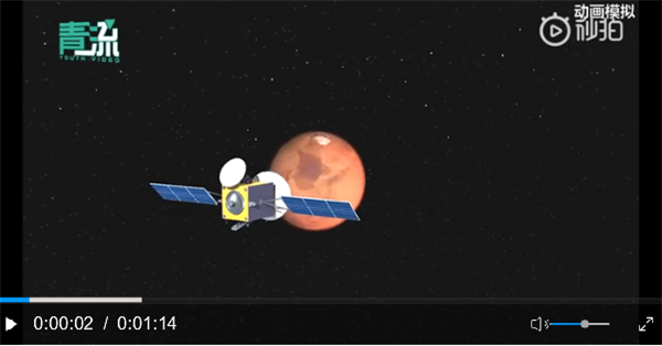 ▲火星探測器著陸動畫示意。來源:央視新聞