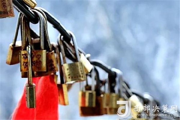 關(guān)內(nèi)、關(guān)外登山路兩側(cè)的鐵索上,情侶鎖、平安鎖,重重疊疊,紅繩彩線迎風(fēng)搖曳,筑成一道美麗的愛情風(fēng)景線。