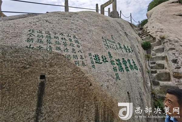 在登山沿途各景點(diǎn)、峭壁石巖上遍布著歷代文人墨客留下的墨寶,內(nèi)容十分豐富、風(fēng)格各異、藝術(shù)價值非常高、教化意義也非常積極。摩崖石刻在無形中成為了蔚為壯觀的石刻藝術(shù)景觀,成為華山旅游文化一個十分突出的內(nèi)容。