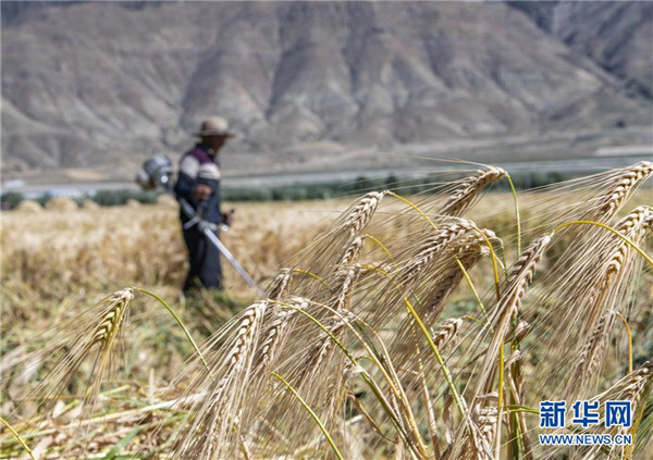 8月29日,農(nóng)民在日喀則市江孜縣的青稞田里忙收割。日喀則是西藏重要的商品糧基地,被譽為“西藏糧倉”。當(dāng)前正值青稞收獲季節(jié),當(dāng)?shù)剞r(nóng)民抓緊收割,農(nóng)田里一片繁忙景象。新華社記者孫非攝
