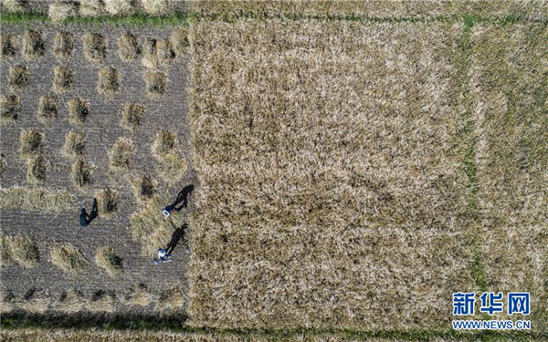 8月29日,農(nóng)民在日喀則市江孜縣的青稞田里忙收割(無人機(jī)照片)。日喀則是西藏重要的商品糧基地,被譽為“西藏糧倉”。當(dāng)前正值青稞收獲季節(jié),當(dāng)?shù)剞r(nóng)民抓緊收割,農(nóng)田里一片繁忙景象。新華社記者孫非攝