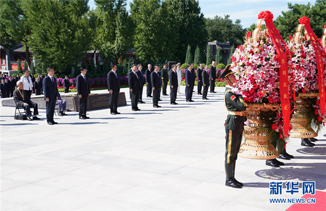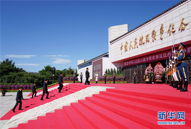 9月3日上午,習(xí)近平、李克強、栗戰(zhàn)書、汪洋、王滬寧、趙樂際、韓正、王岐山等黨和國家領(lǐng)導(dǎo)人來到中國人民抗日戰(zhàn)爭紀(jì)念館,出席紀(jì)念中國人民抗日戰(zhàn)爭暨世界反法西斯戰(zhàn)爭勝利75周年向抗戰(zhàn)烈士敬獻(xiàn)花籃儀式。 新華社記者 王曄 攝