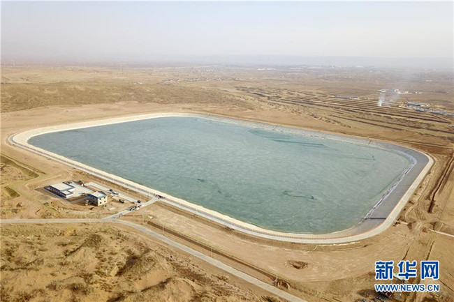 這是古浪縣黃花灘生態(tài)移民區(qū)1號調(diào)蓄水池(3月5日攝,無人機照片)。 新華社記者 范培珅 攝