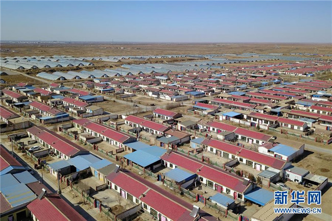 這是古浪縣黃花灘生態(tài)移民區(qū)感恩新村住房及日光溫室大棚(3月10日攝,無人機照片)。 新華社記者 范培珅 攝