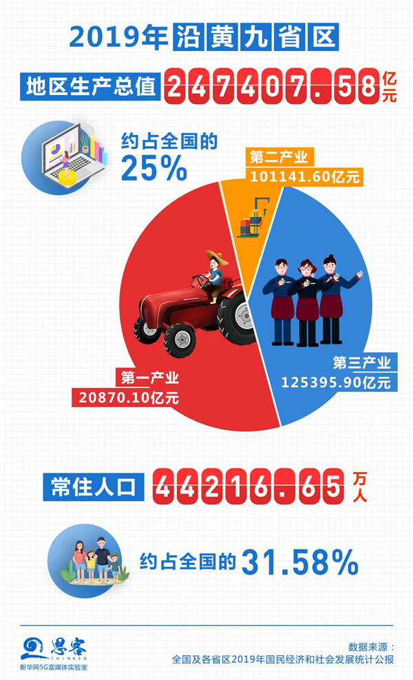 “平衡南北方,協(xié)同東中西”,黃河流域在我國經(jīng)濟(jì)社會發(fā)展中地位十分重要。流經(jīng)青海、四川、甘肅、寧夏、內(nèi)蒙古、陜西、山西、河南、山東9個省區(qū)的黃河,流域內(nèi)省份2019年底總?cè)丝?.42億,占全國的31.58%;地區(qū)生產(chǎn)總值24.74萬億元,約占全國25%。