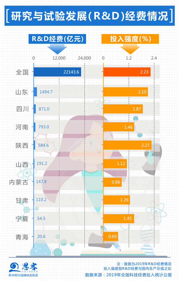 同東部沿海地區(qū)、南方省份相比,黃河流域創(chuàng)新競爭壓力巨大,創(chuàng)新要素“孔雀東南飛”的趨勢嚴(yán)峻。2019年,九省區(qū)內(nèi)只有陜西的R&D經(jīng)費(fèi)投入強(qiáng)度高于全國平均水平。高端人才、技術(shù)勞動力、產(chǎn)業(yè)資本等關(guān)鍵要素外流態(tài)勢仍在持續(xù),因此黃河流域在新舊動能轉(zhuǎn)換上面臨困境。