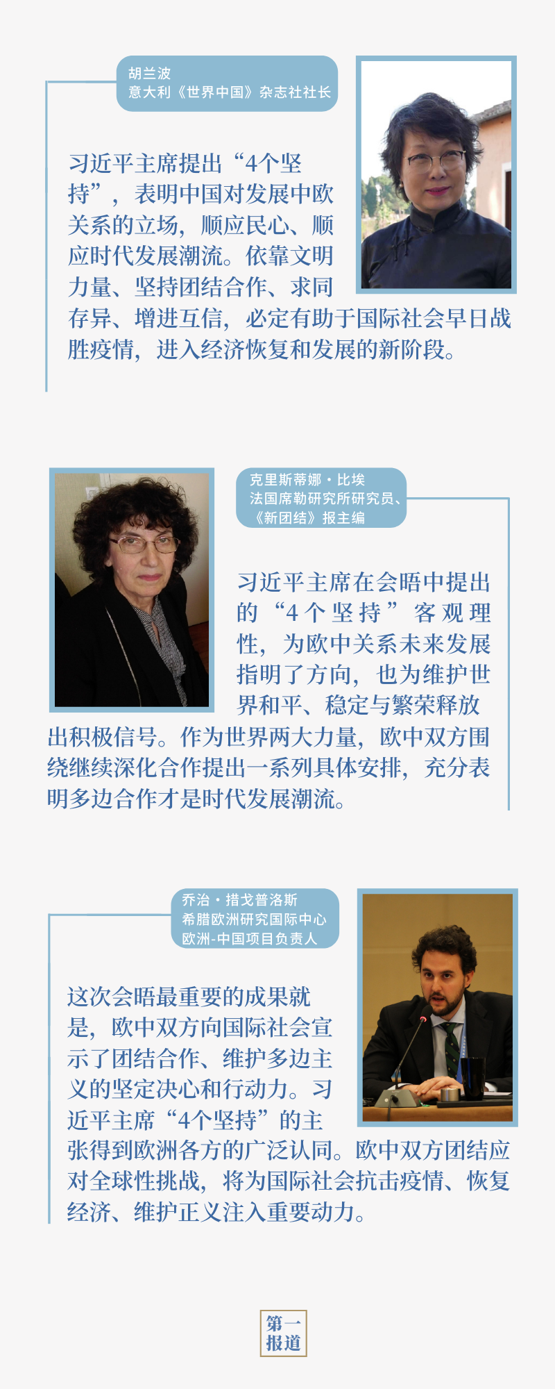 習(xí)主席關(guān)于中歐關(guān)系的這些重要論述,意涵深刻。“4個(gè)堅(jiān)持”,為下階段中歐關(guān)系發(fā)展指明方向,也體現(xiàn)中國(guó)深化中歐全面戰(zhàn)略伙伴關(guān)系的誠(chéng)意擔(dān)當(dāng)。
