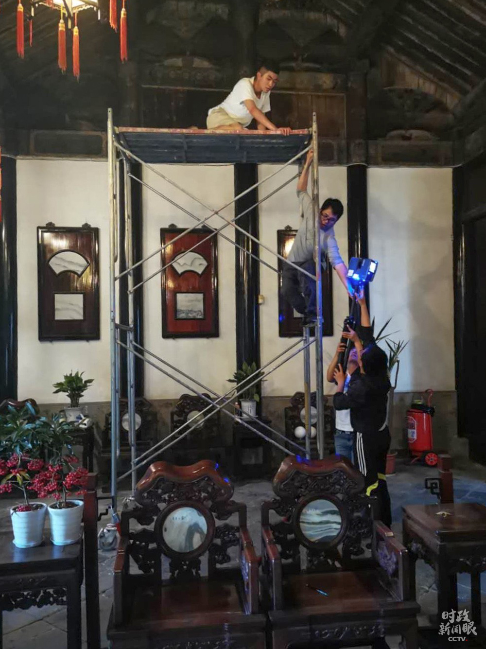 △北大考古文博學院學生架設三維掃描儀,開展文物建筑考古與測試實習。