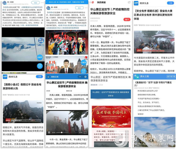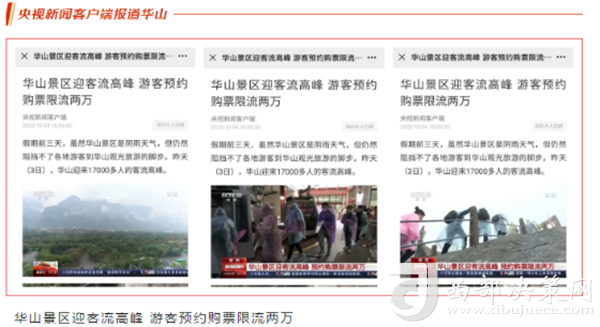 度節(jié)期間,通過央視cctv2【天下財經】、cctv4、cctv13【新聞30分】、cctv13【新聞直播間】、央視網【國慶假期·出游】、央視網學習強國、央視新聞客戶端、新華社等國家級媒體對景區(qū)度節(jié)工作、游覽秩序、特色服務等方面進行轟炸式報道;聯(lián)合陜西日報、陜西電視臺、渭南日報、渭南電視臺、三秦都市報、陜西旅游資訊、騰訊網、新浪網、網易陜西、鳳凰陜西等30余家主流媒體對景區(qū)度節(jié)期間各項工作及實時風景進行跟蹤報道,共計發(fā)布各類宣傳稿件239篇,全面提升景區(qū)旅游熱度。