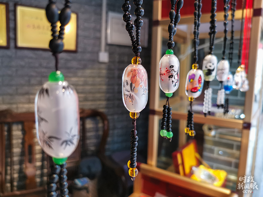 △汕頭瓶內(nèi)畫(粵派)創(chuàng)作以色彩艷麗和裝飾風(fēng)格著稱。(總臺央視記者李曉周拍攝)