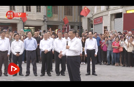 隨后,習(xí)近平步行到開埠區(qū)街區(qū),察看人文歷史風(fēng)貌,同市民群眾親切交流。