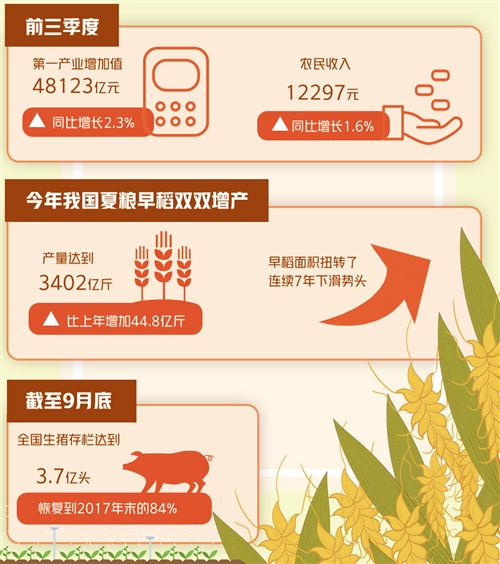 前三季度第一產(chǎn)業(yè)增加值48123億元,同比增長(zhǎng)2.3%——