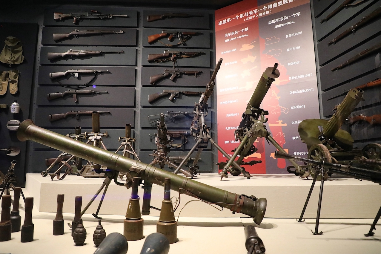 △陳列在遼寧丹東抗美援朝紀(jì)念館中的槍支、火炮。