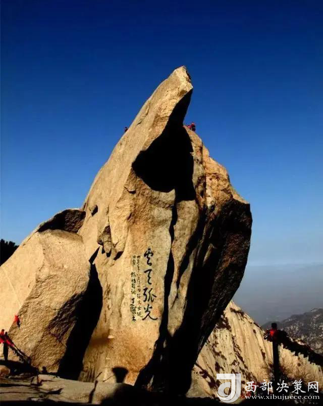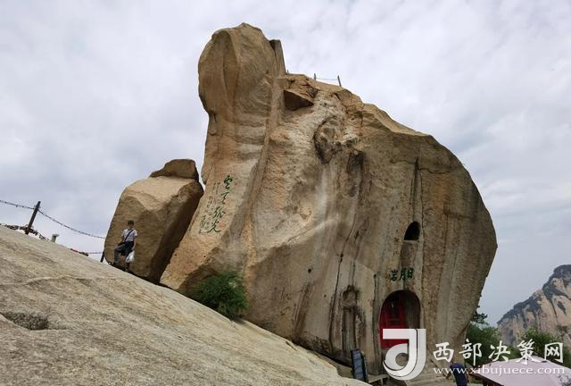 華山的美是“他”昂揚風姿、冠絕五岳的那份傲氣。華山的韻是“他”看不盡、摸不透的那份神秘。就在這萬般火熱而五彩的氛圍中,就在這千百年的磨礪里,兩塊佇立在山中的一大一小的巨石更引起了探秘者的好奇和興趣。