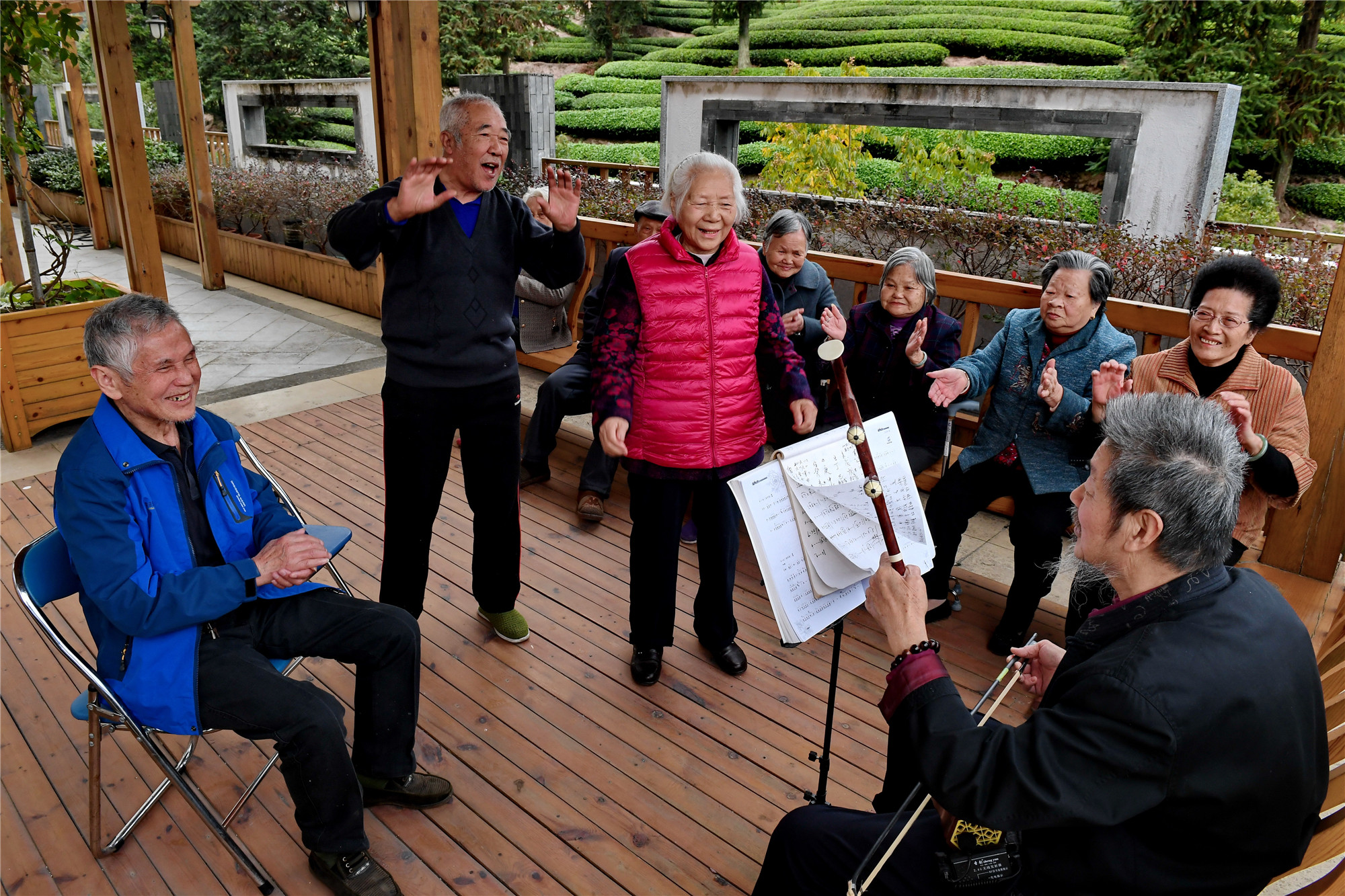 老人在福建省武夷山市社會(huì)福利中心唱歌(2018年11月1日攝)。新華社記者 張國(guó)俊 攝