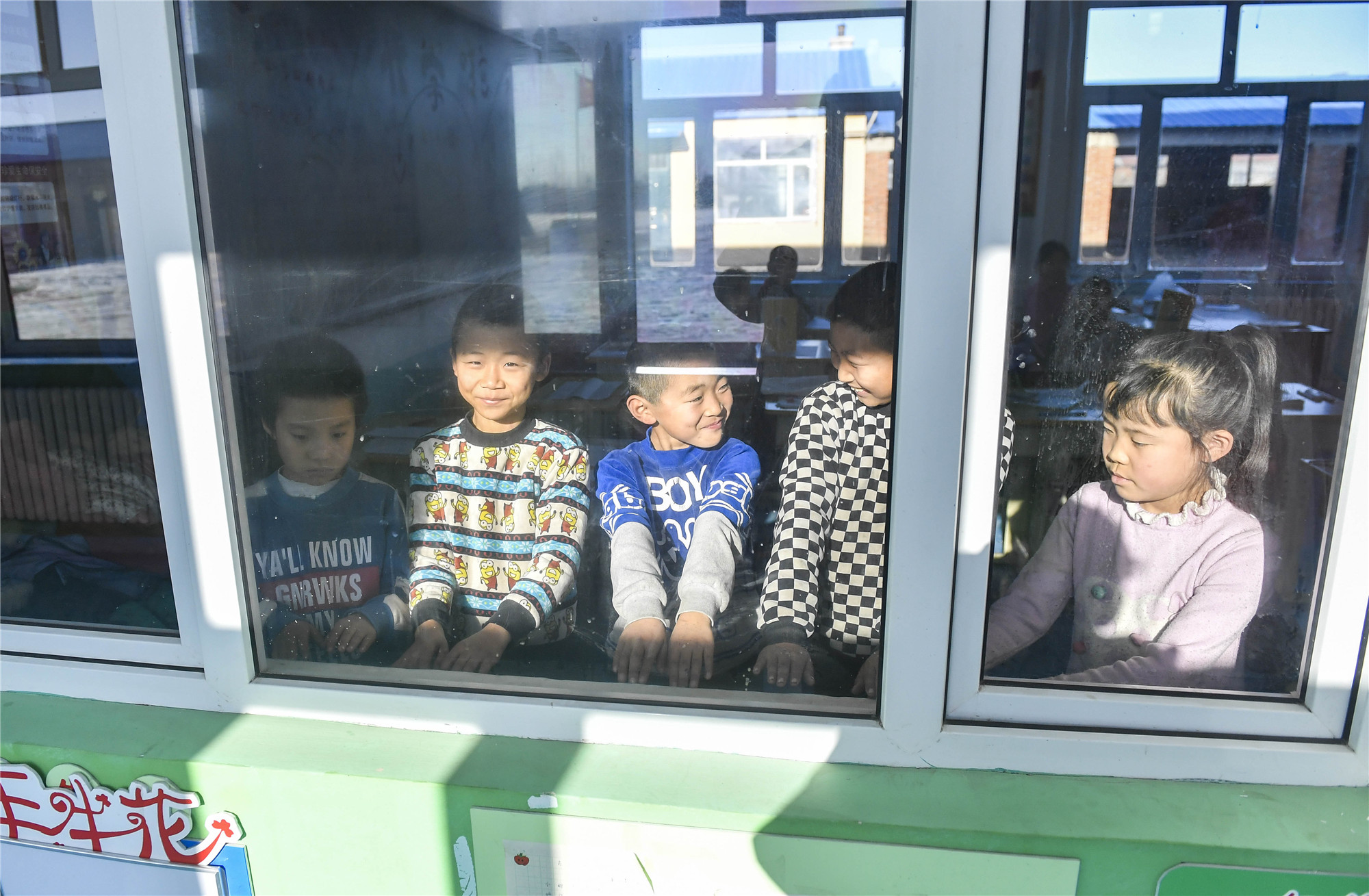 吉林省德惠市邊崗鄉(xiāng)臥虎村小學(xué)學(xué)生在戶外活動(dòng)后圍著教室內(nèi)的環(huán)流散熱器取暖(2018年12月26日攝)。新華社記者 許暢 攝